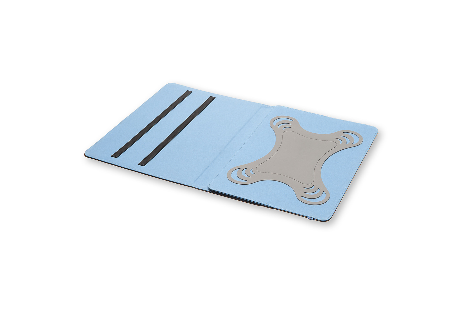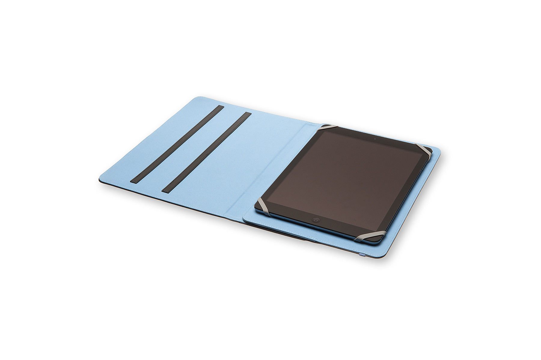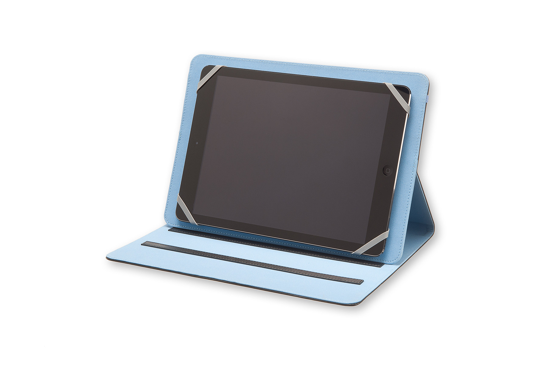 Dieses zweifarbige Universalfutteral aus Polyurethan ist für die meisten 9–10''-Tablets geeignet, denn sein flexibler Silikoneinsatz hält das Tablet in Position, auch wenn es steht. Dieses Tabletfutteral lässt sich mit dem blauen, auf das Innenfutter abgestimmten Gummiband bequem wie ein Moleskine-Notizbuch verschließen.