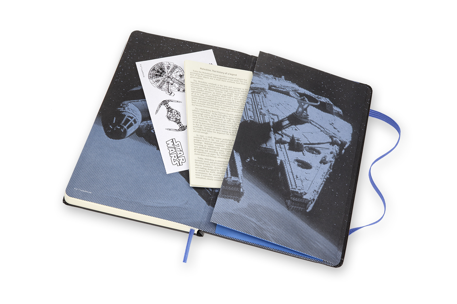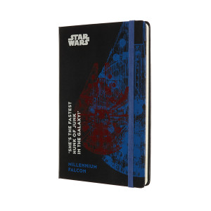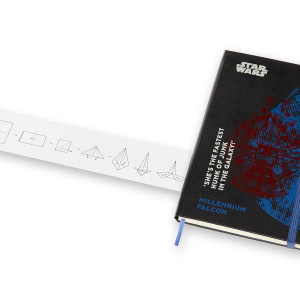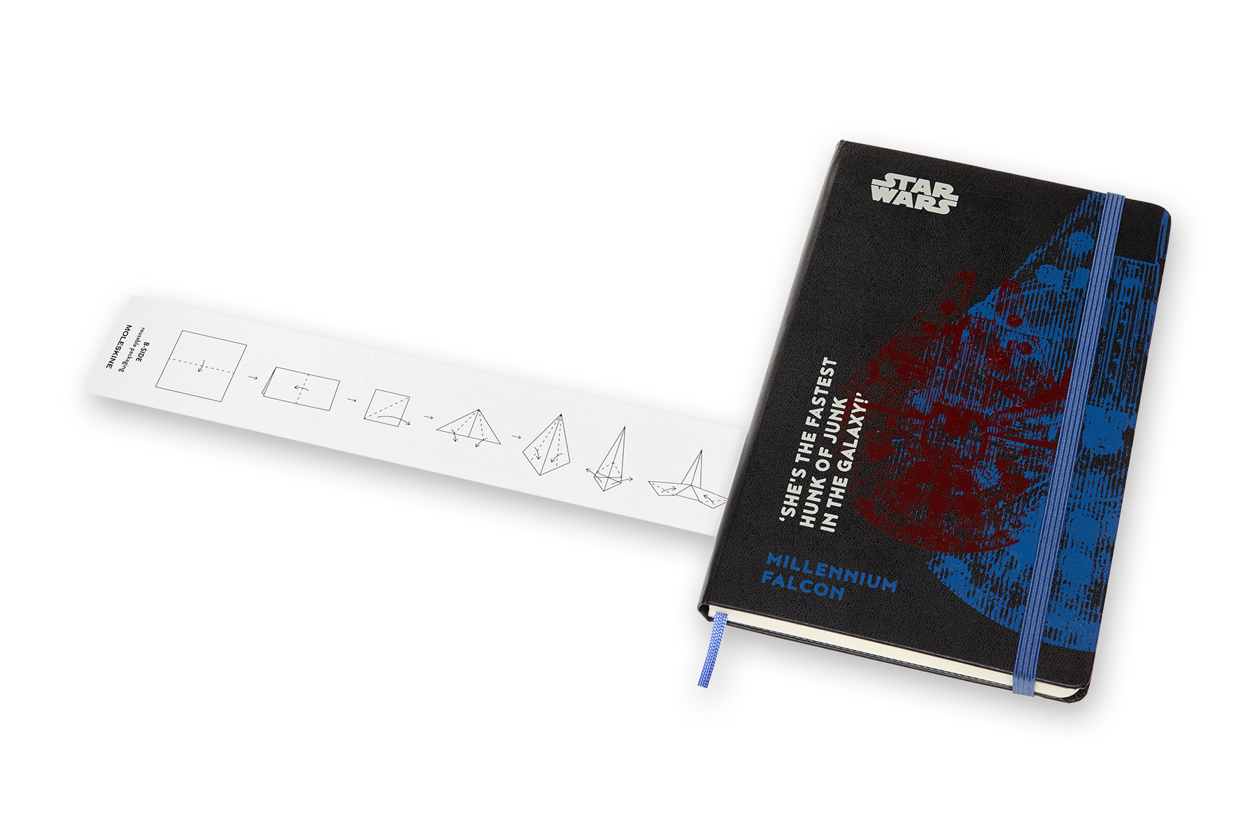 Die nostalgische Star Wars Notizbuch Kollektion fordert Sie auf, Ihre Verbundenheit mit der Rebellen-Allianz zu erklären. Die Kollektion besteht aus 2 linierten Notizbüchern, davon das erste mit dem Millennium Falcon und Lando Calrissians bekanntem Zitat über das Raumschiff, und das zweite mit der Luftansicht eines X-Flüglers und einem ebenso bekannten Zitat von Luke Skywalker. Das Star Wars Thema geht weiter auf den Vorsatzblättern und auf der Banderolenrückseite mit einer Anleitung für die Herstellung eines X-Flüglers in Origami Technik. Zu jeder Star Wars Notizbuch Sonderausgabe gehört ein lustiges Set von Themenstickern, die Ihre Notizen um ein wenig Star Wars Action erweitern.