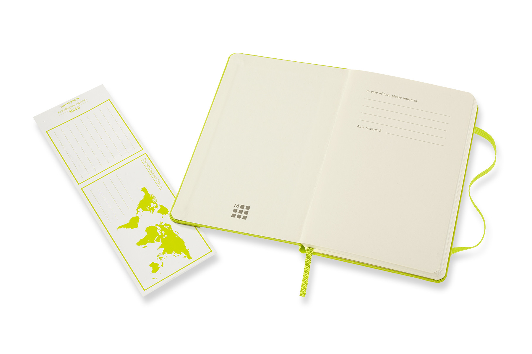 Wie alle Classic Notizbücher verfügt diese hellgrüne Ausführung über einen farblich passenden Gummibandverschluss und abgerundete Ecken, die die Seiten und alles andere in seinem Inneren schützen, sowie ein zugehöriges Lesezeichenband, das Sie stets wieder zur richtigen Stelle führt. Eine erweiterbare Tasche hinten bietet Platz für lose Notizen und Ideen, die Sie unterwegs sammeln. Auf dem unverkennbaren „In case of loss“-Hinweis vorne können Sie Ihren Namen und eine Belohnung für den ehrlichen Finder festhalten – der erste Schritt, um sich dieses Notizbuch zu eigen zu machen.