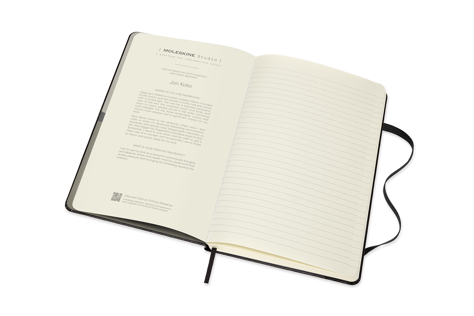 Moleskine Studio Notizbücher stellen die Werke von verschiedenen internationalen Künstlerinnen und Künstlern aus, jeweils wahlweise mit Blankoseiten oder liniert. Die Originalwerke sind nicht nur auf dem Einband zu finden, sondern auch auf den Vorsatzblättern und einem Satz Aufkleber im Inneren. Die Seiten aus 100g/m2-Papier eignen sich für eine Vielzahl von Schreib- und Zeichenstiften.