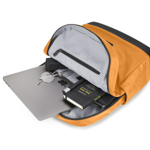 Dieser federleichte Rucksack aus glattem, reissfestem Nylon in orangegelber Farbe ist für energiegeladene Reisende in den Zwanzigern und alle, die auch unterwegs kreativ werden wollen. Hinein passt alles, was Sie brauchen, um die Herausforderungen der Grossstadt anzunehmen: Packen Sie Ihre Bücher und Zeitschriften, Geräte und Tools für verknüpftes Denken, Snacks und den Soundtrack ein, der Sie antreibt.