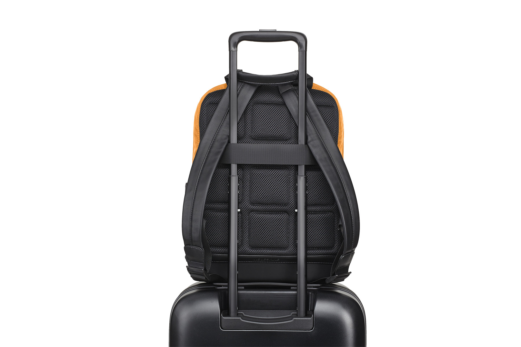 Mit seiner harten Unterseite bleibt der Backpack von alleine stehen, schützt all Ihre Habseligkeiten und ermöglicht das schnelle Finden wichtiger Dinge. Das Innere besteht aus einem Einschubfach für Geräte mit einer Grösse bis 15 Zoll sowie aus einer sicheren Tasche mit Reissverschluss für lose Kleinteile wie Schlüssel und Kabel. In zwei Aussentaschen ist genügend Platz für alles, was schnell und einfach griffbereit sein soll. Die in der Länge verstellbaren, gepolsterten Schulterriemen mit atmungsaktiver Netzrückseite sorgen dafür, dass sich dieser Rucksack extrem angenehm tragen lässt. Und wenn Sie länger unterwegs sind, lässt sich der Backpack über den Gepäckriemen ganz einfach am Koffergriff befestigen. Wenn es einmal schnell gehen muss, tragen Sie den Rucksack über den oberen Tragegriff schnell von A nach B.