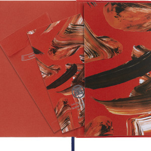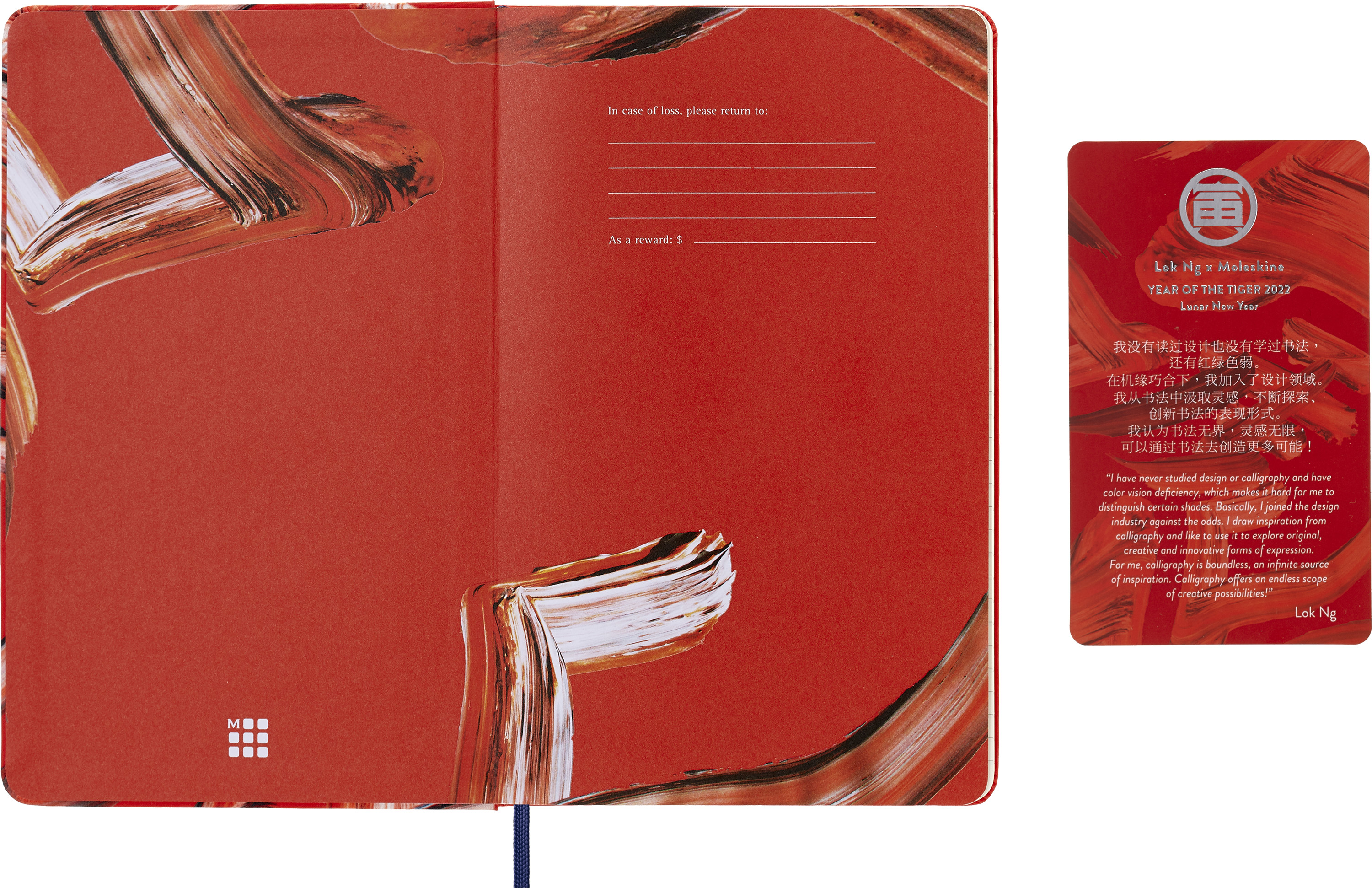 - rotfarbener Umschlag mit einer Illustration des Kalligrafen und Grafikdesigners Lok Ng