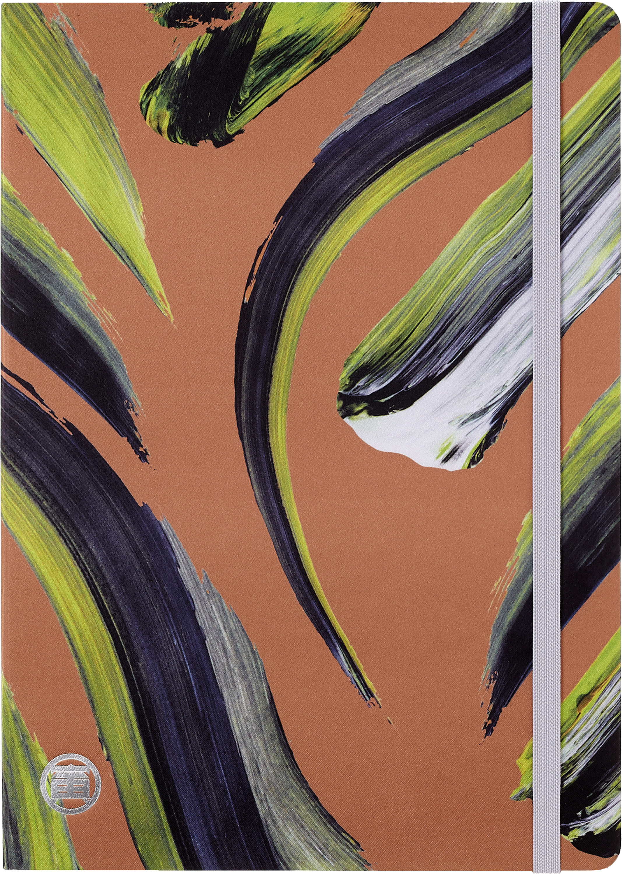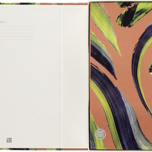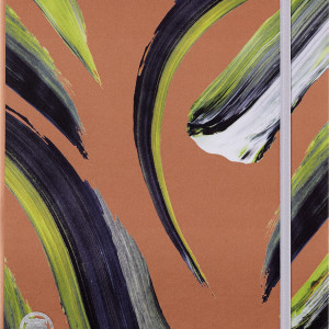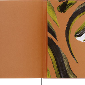 - liniertes Notizbuch mit festem Einband mit thematisch abgestimmten Grafikelementen und Details, abgerundeten Ecken und Gummiband zum Verschliessen