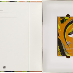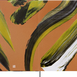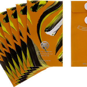 - gelb/grünfarbener Umschlag mit einer Illustration des Kalligrafen und Grafikdesigners Lok Ng