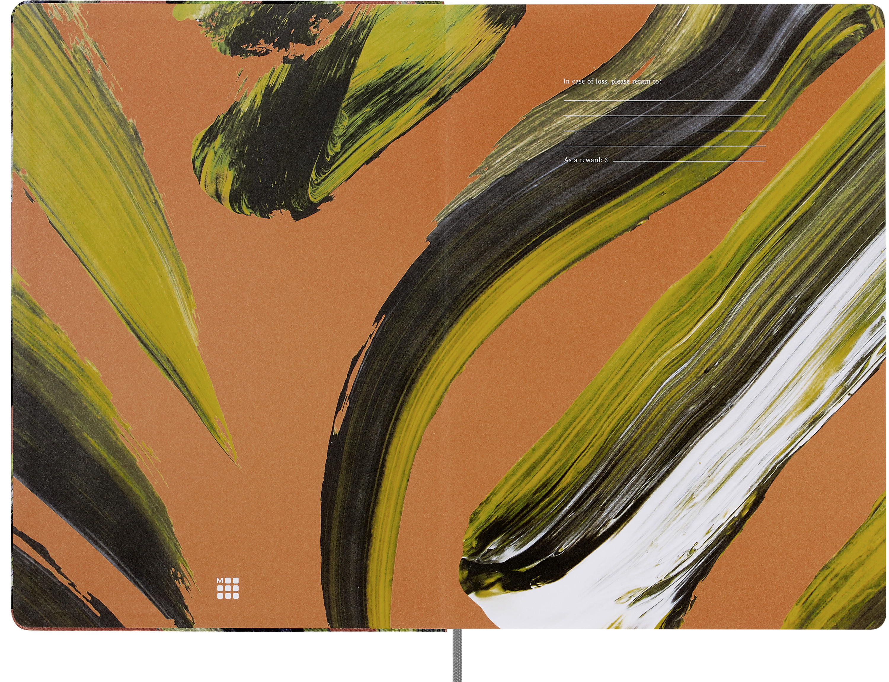 - individuell gestaltete Vorsatzblätter mit „in case of loss" Label