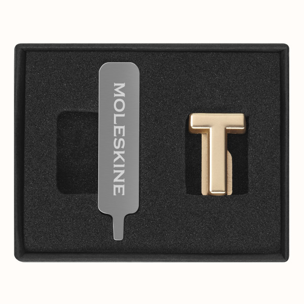 - utilisez la vis métallique et le tournevis fourni pour les fixer à la fermeture élastique de votre Moleskine