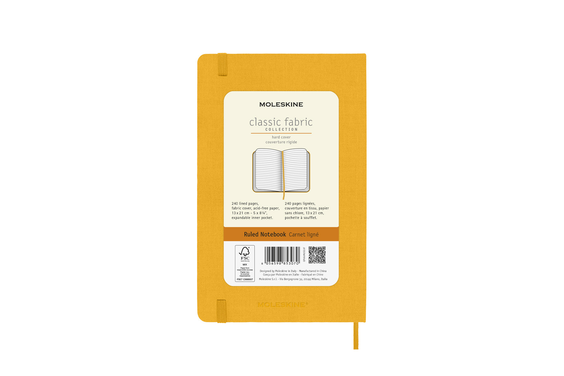- couverture rigide en tissu, angles arrondis, fermeture à élastique
