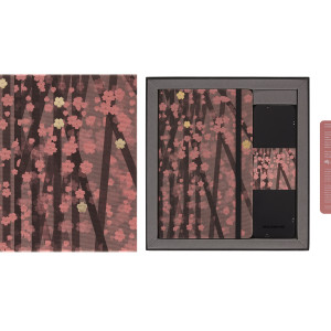 Eine Sakura Sammlerbox mit Werken des gefeierten japanischen Modedesigners Kosuke Tsumura. Diese schöne Geschenkbox enthält ein Notizbuch der limitierten Ausgabe und ein Set mit fünf Buntstiften, jeweils mit einem besonderen Zitat des Designers. In Japan ist die alljährliche Kirschblütensaison seit jeher eine Zeit der Reflexion über die Vergänglichkeit der Dinge. Entdecken Sie ein Sakura Limited Edition Notizbuch, das diesen Augenblick feiert, entworfen von dem bekannten japanischen Modedesigner Kosuke Tsumura. Der Stoffeinband zeigt Kosukes individuelle Interpretation des „hanami“, der traditionellen Kirschblütenschau, der sich die Japaner nicht nur am Tag, sondern auch nachts widmen. Die zarten rosafarbenen Blüten leuchten vor dem dunklen Hintergrund des Nachthimmels und erzeugen eine magische Atmosphäre.