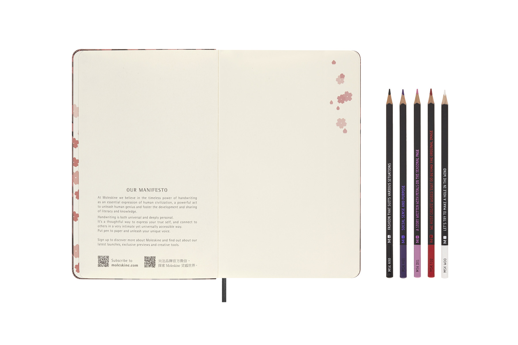 Dieses Sakura Notizbuch ist Teil der Asia Kollektion 2023 von Moleskine. Die Kollektion präsentiert zeitgenössische asiatische Talente, die die Nachbarländer China, Japan und Korea zusammenführen. Sie wurde geschaffen für mehr kreative Energie und ist eine Ode an die Vielfalt asiatischer Traditionen. Jedes besondere Notizbuchdesign bereichert die Mission von Moleskine, Kreativität zu fördern und zu Ideen für die Zukunft zu inspirieren.
