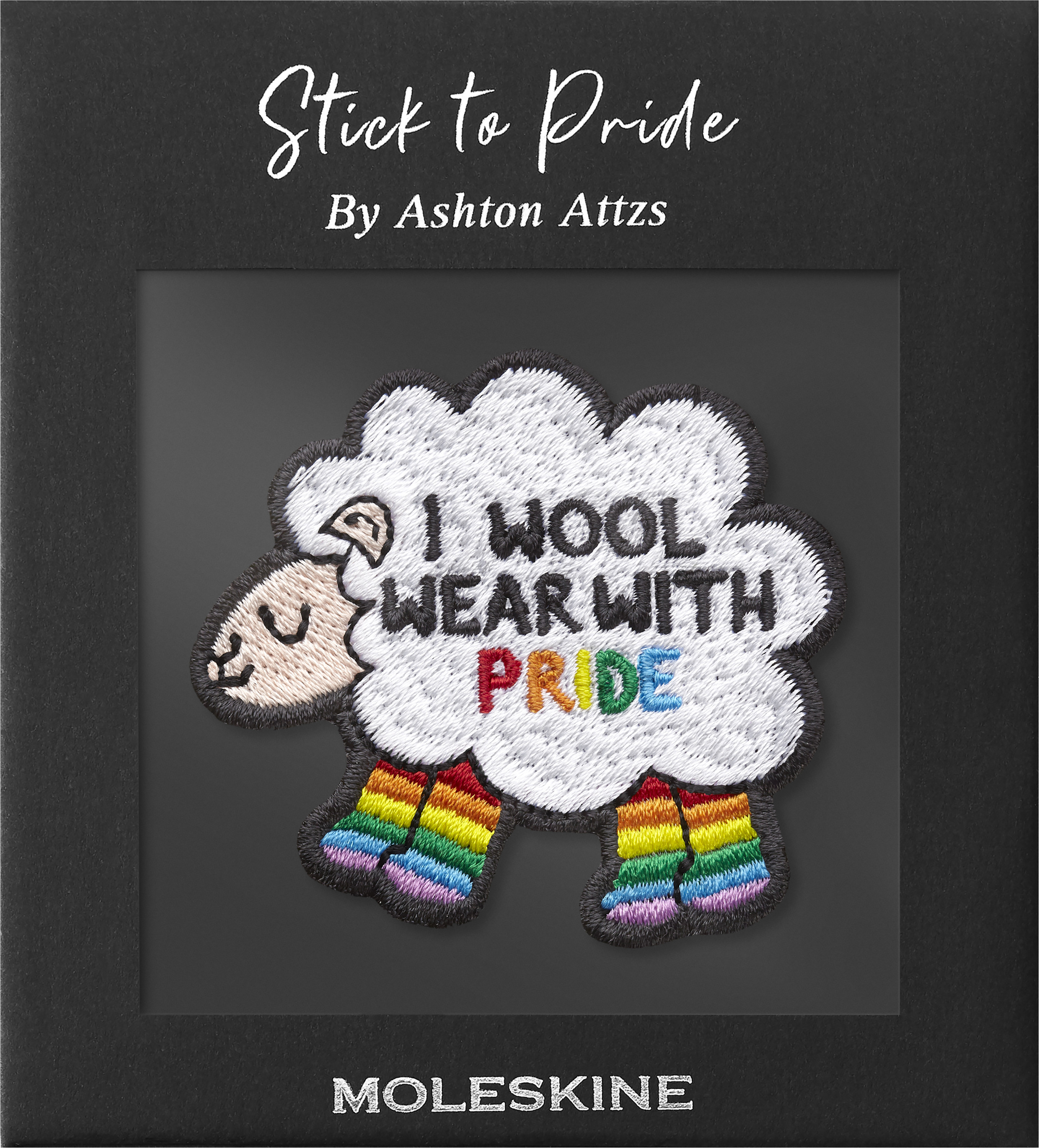 Farbenfroher gestickter Aufkleber, entworfen von Ashton Attzs dessen unverwechselbaren Gemälde und Illustrationen eine Reihe von Themen wie LGBTQ+ Interessenvertretung, Einheit, Positivität, Musik und psychische Gesundheit zelebrieren.