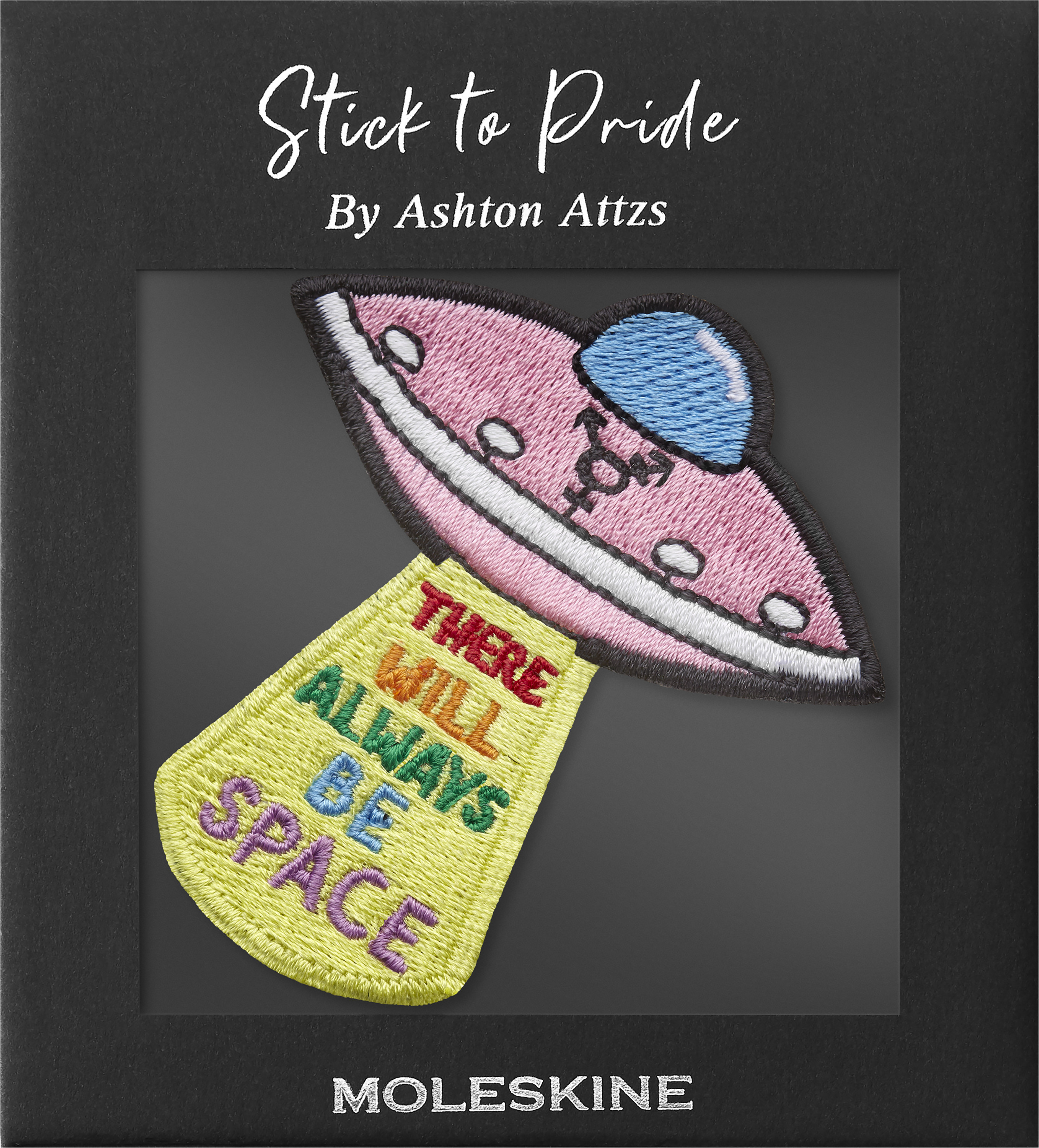 Farbenfroher gestickter Aufkleber, entworfen von Ashton Attzs dessen unverwechselbaren Gemälde und Illustrationen eine Reihe von Themen wie LGBTQ+ Interessenvertretung, Einheit, Positivität, Musik und psychische Gesundheit zelebrieren.