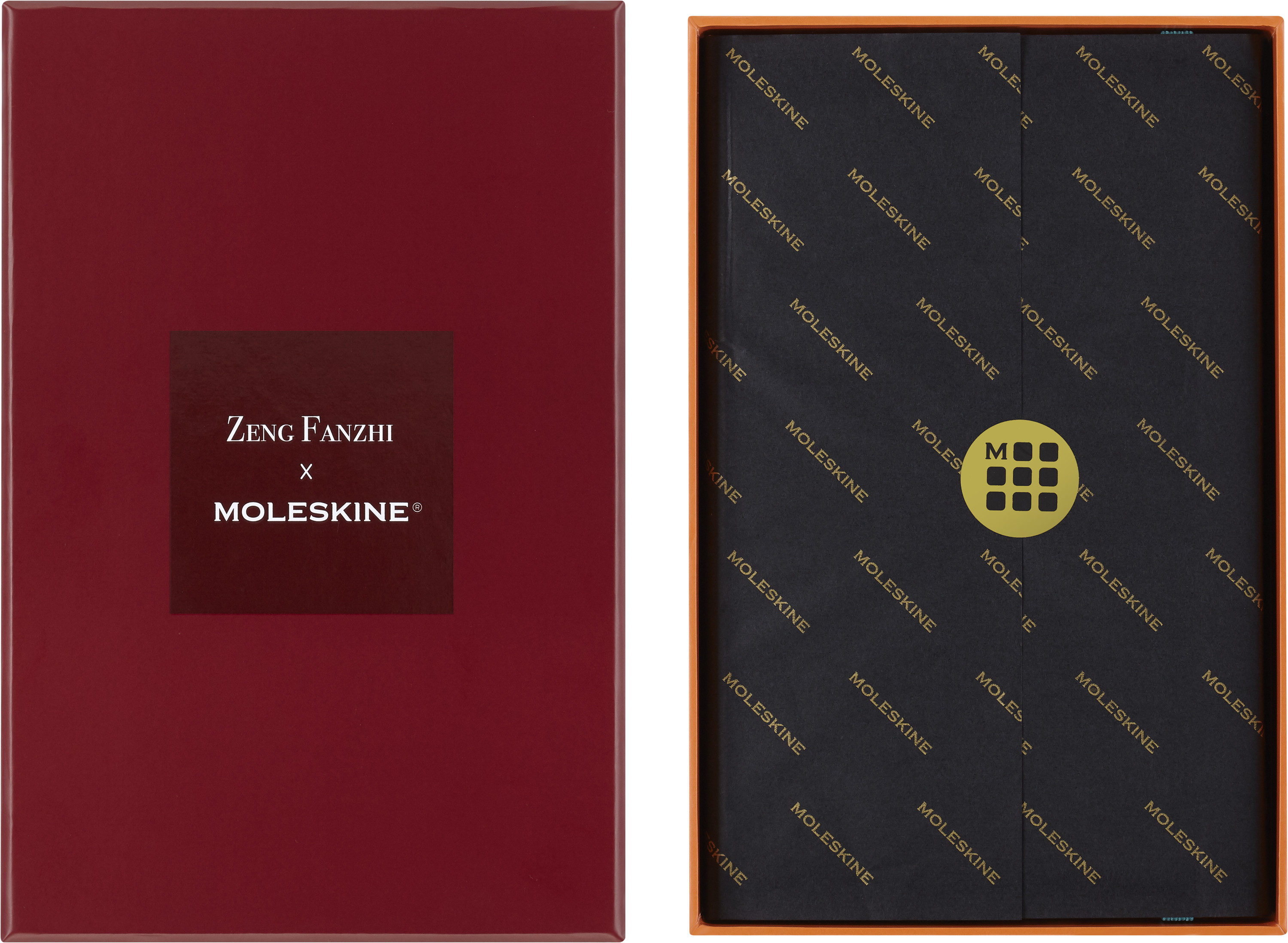 Im Inneren dieser auffälligen Geschenkbox wartet ein liniertes Limited Edition Notizbuch. Der griffige Stoffeinband des Notizbuchs zeigt eine Nahaufnahme eines Originalgemäldes von Zeng Fanzhi zur Feier des Jahres des Drachen. Neben dem vom chinesischen Neujahr inspirierten Einband enthält diese limitierte Sonderausgabe auch eine Story-Karte und glückbringende Umschläge.