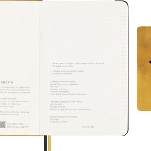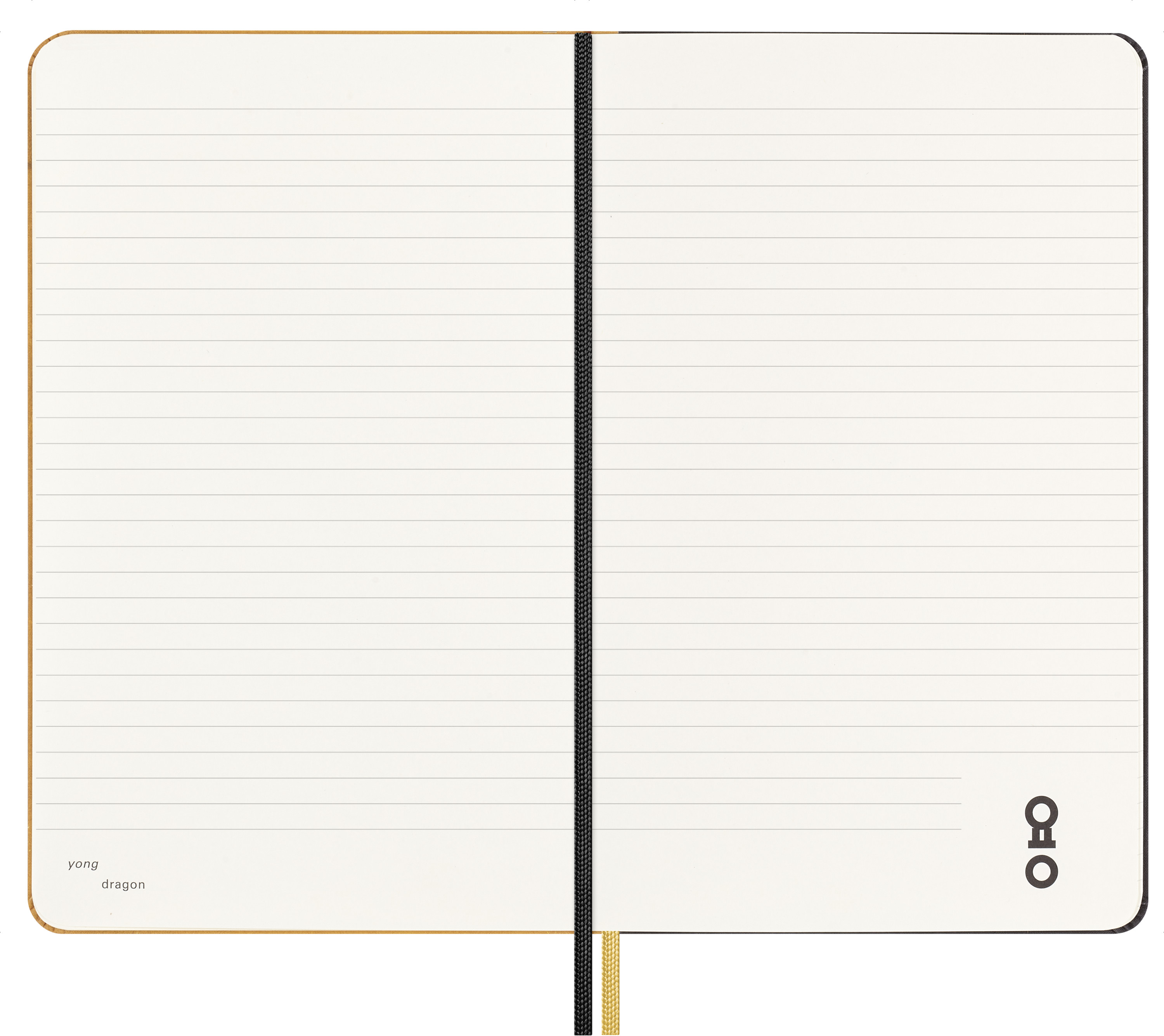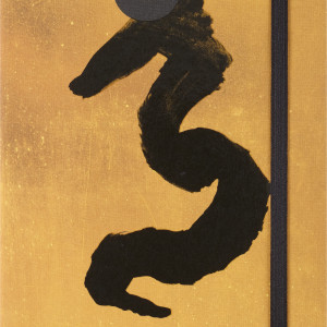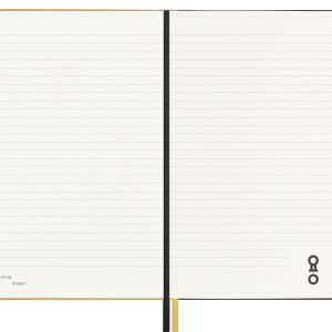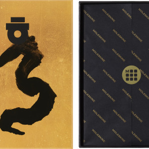 Im Inneren dieser auffälligen goldenen Box wartet ein liniertes Large (13x21cm) Notizbuch mit Ahn Sang Soos Interpretation des Jahres des Drachen auf seinem griffigen Stoffeinband.