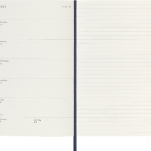 Links Wochenagenda, rechts linierte Notizseite