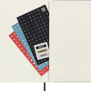 - nützliche Hilfsmittel wie Kalendarium, Reiseplanung, Ideen und Ziele, linierte Seiten für Notizen