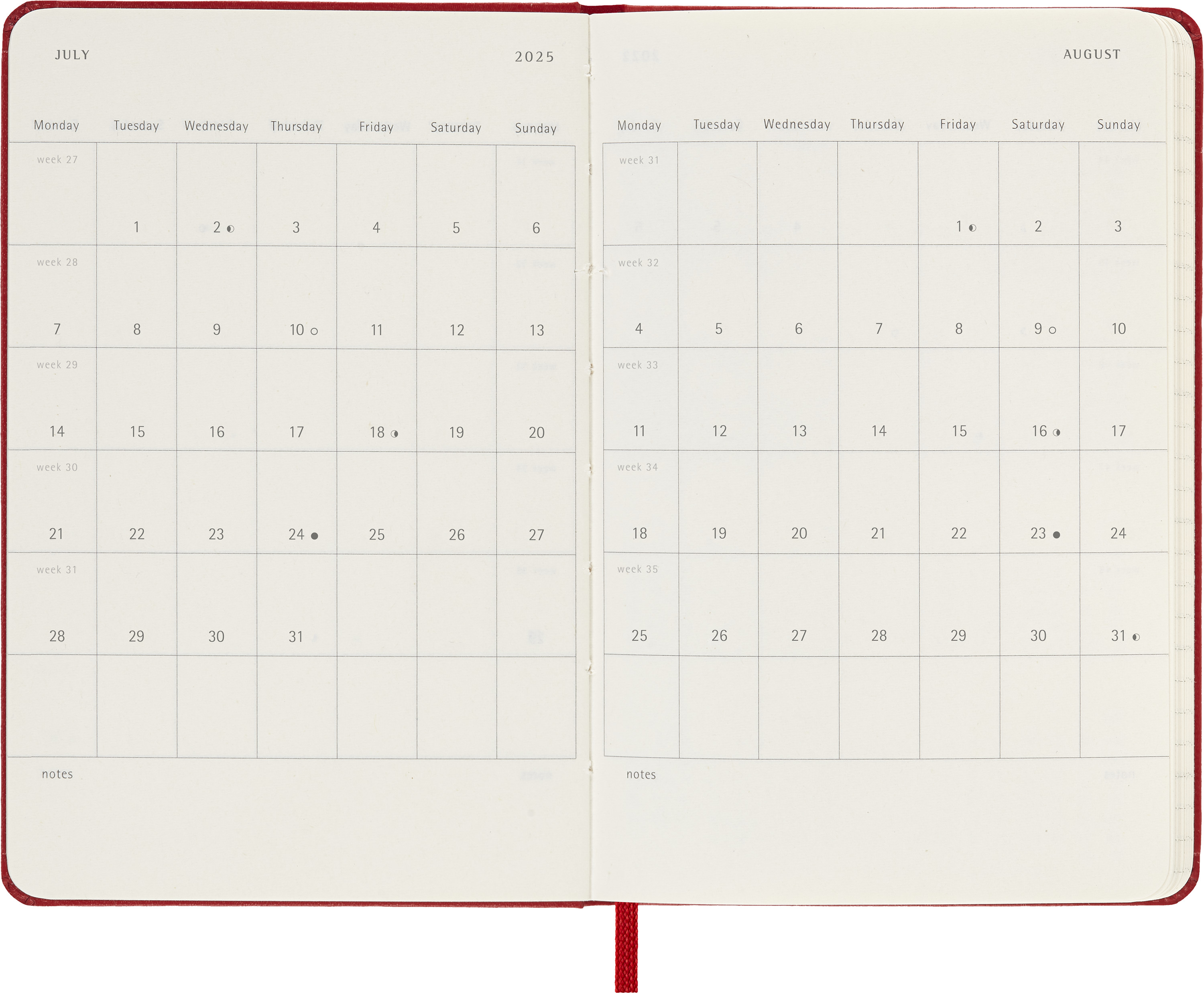 - fester Einband mit abgerundeten Ecken, Gummiband zum Verschliessen und Lesebändchen