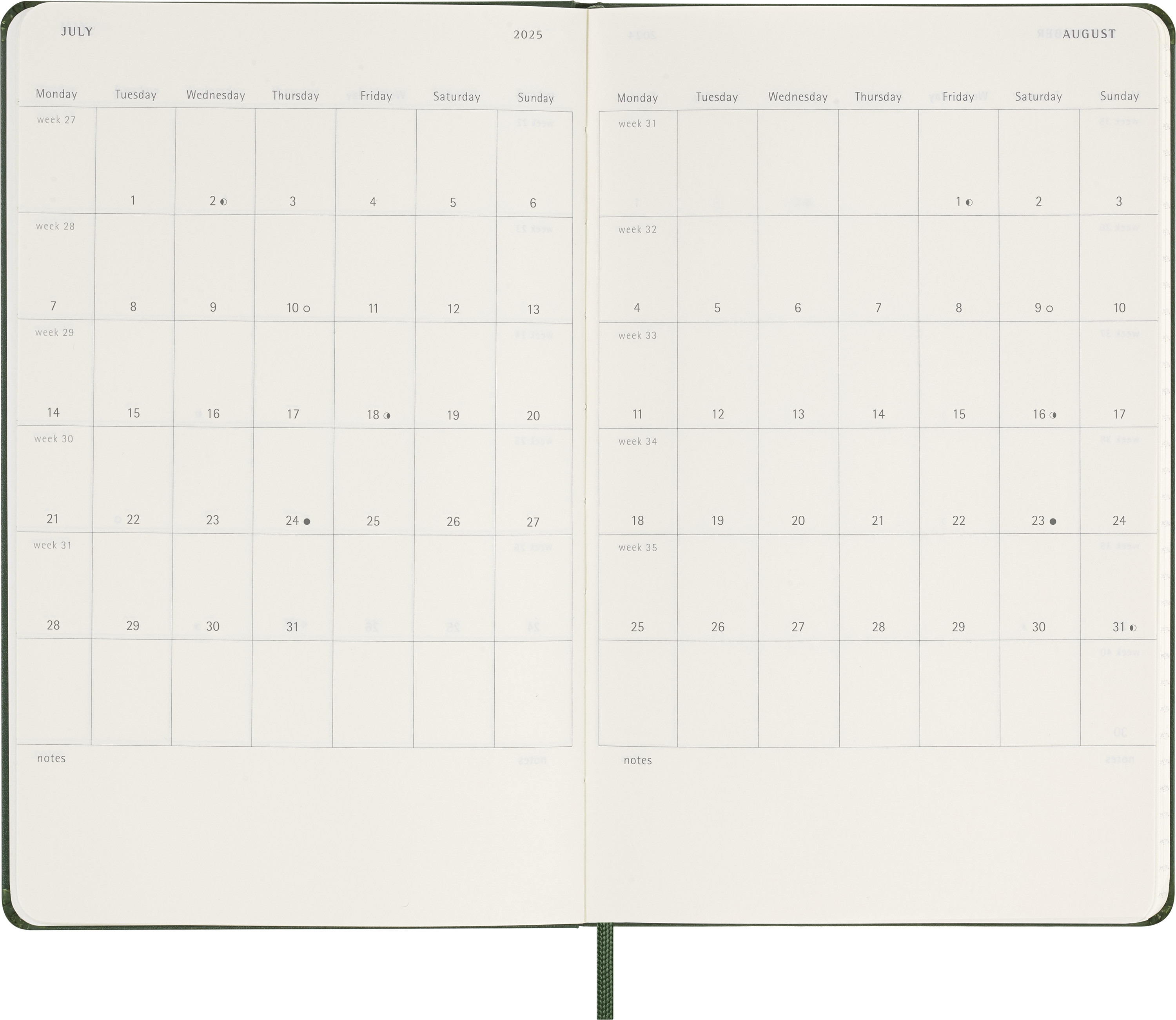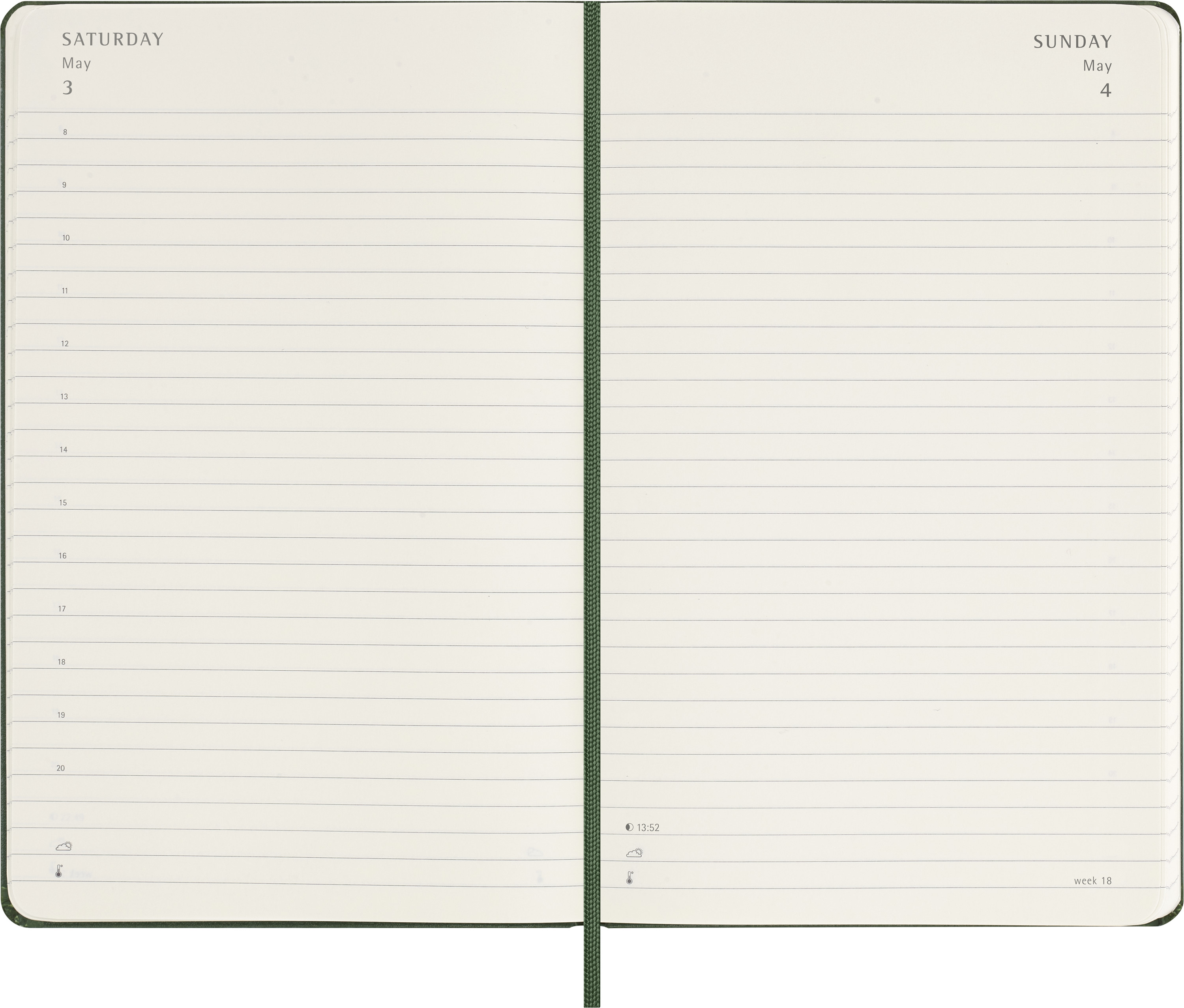 - nützliche Hilfsmittel wie Kalendarium, Reiseplanung, Ideen und Ziele, linierte Seiten für Notizen