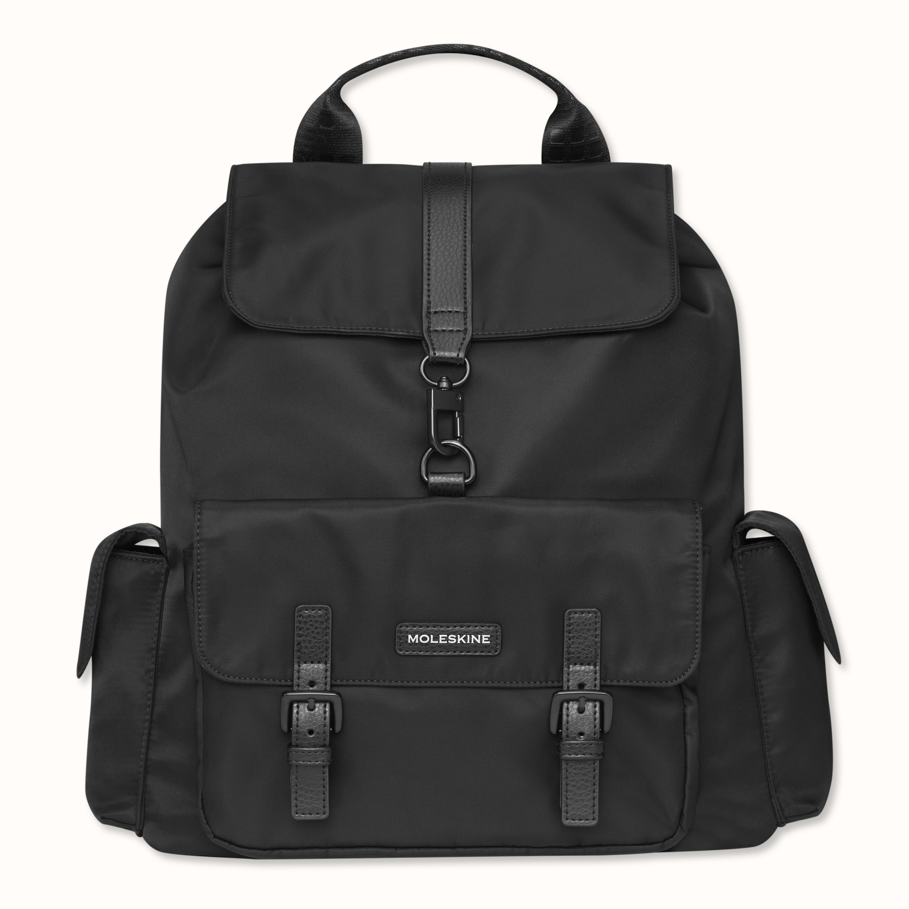 - 3 Aussentaschen mit Magnetverschluss: Vordertasche für grosse Moleskine Notizbücher, Seitentaschen für jeweils ein Moleskine im Pocket Format