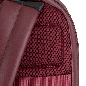 - nouveau panneau arrière en maille air-mesh avec surpiqûres carrées et poignée de bagage en toile avec logo sérigraphié