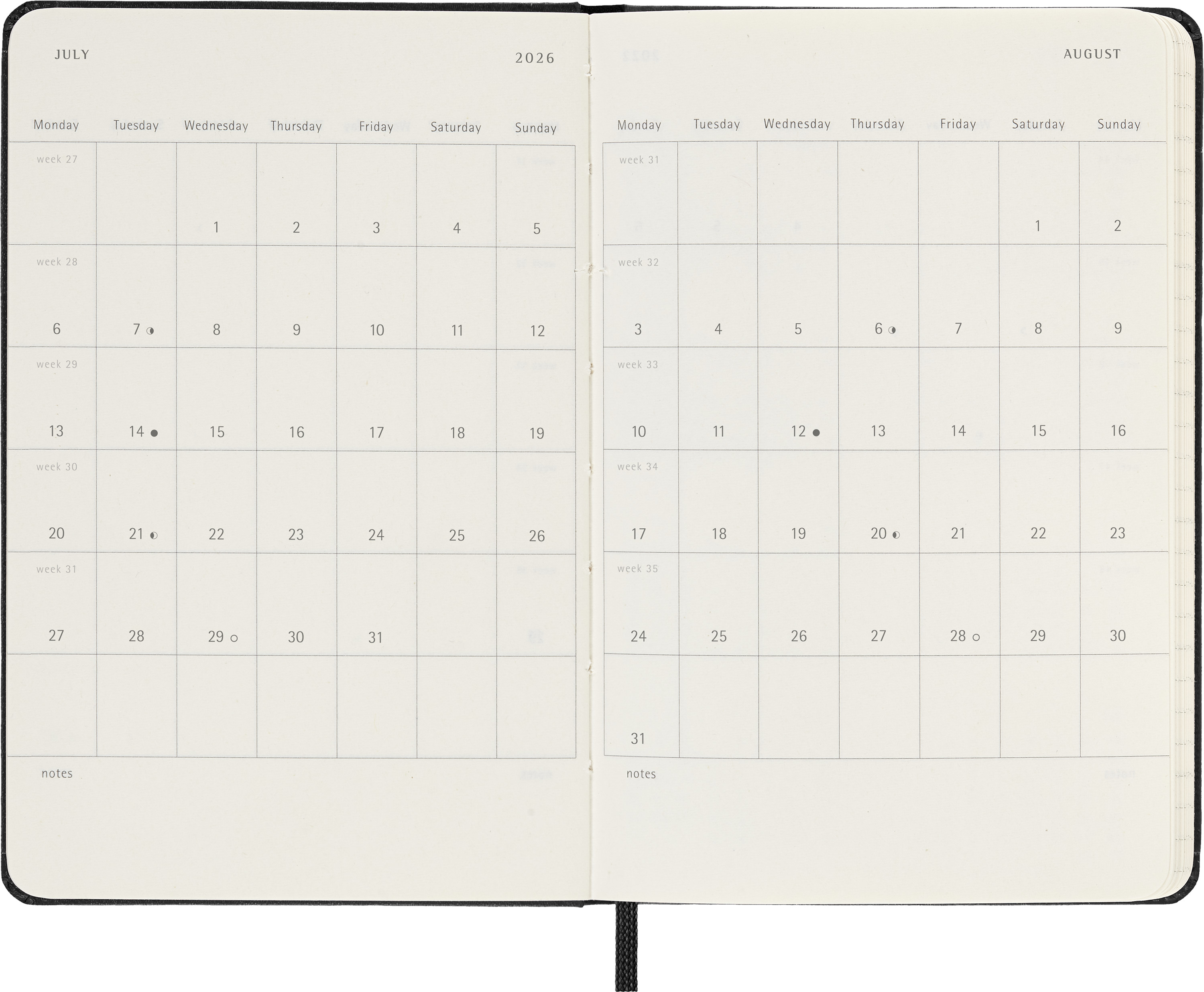 Weekly Notebook Large HC Black 2026 Hardcover, 13 x 21 cm | 144 pages