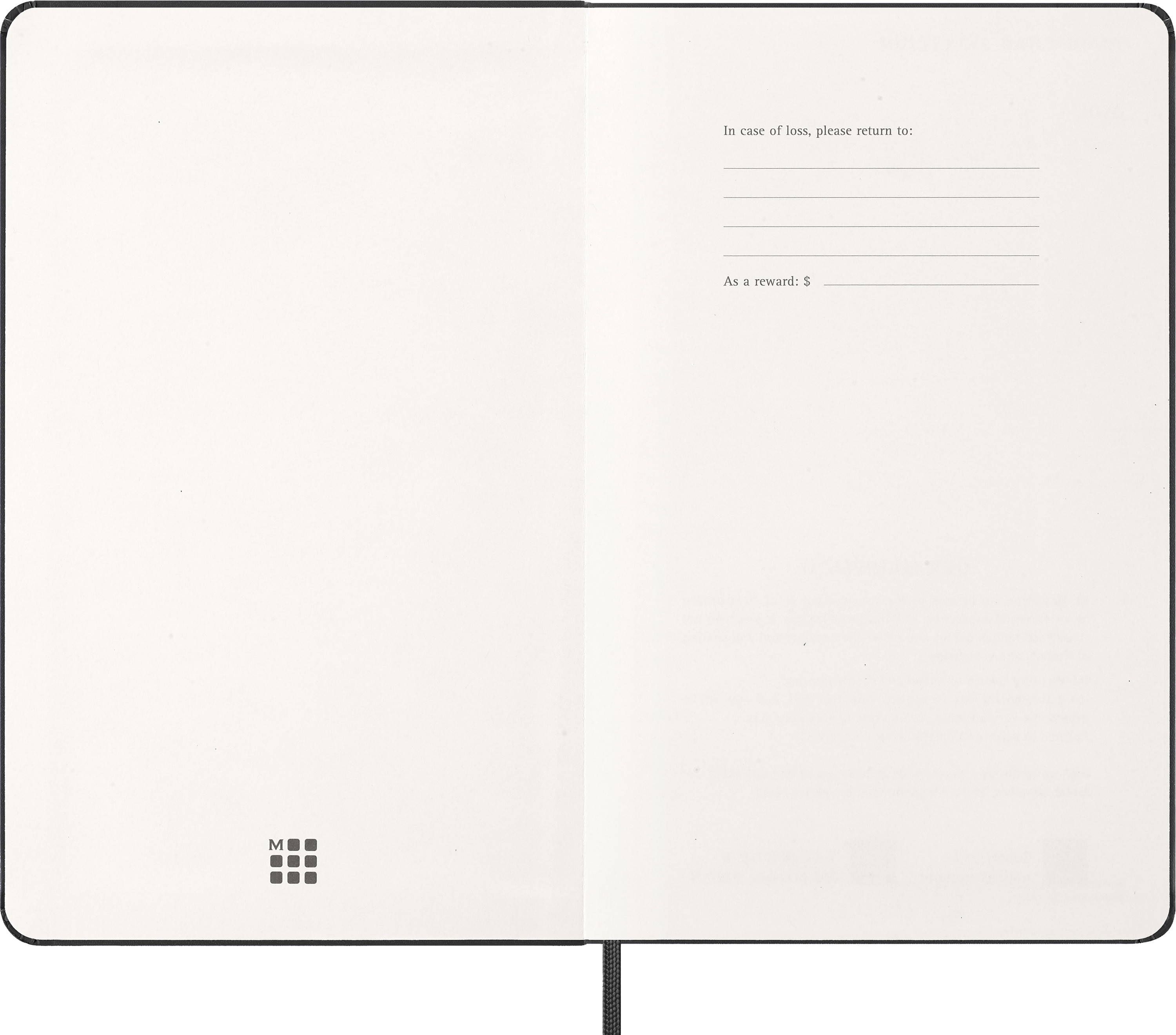 - ,,In case of loss‘‘ Hinweis auf dem Vorsatzblatt