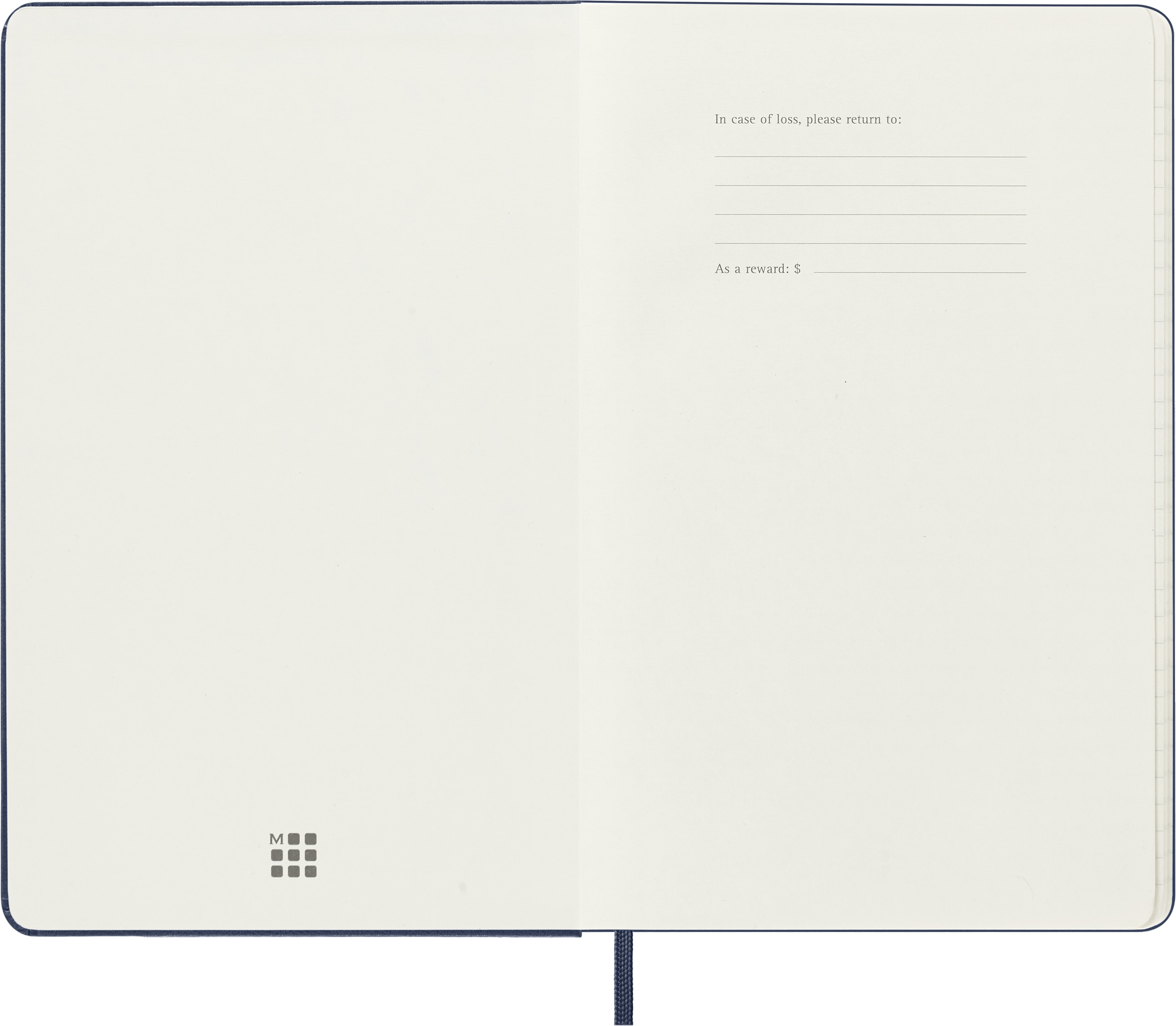 - ,,In case of loss‘‘ Hinweis auf dem Vorsatzblatt