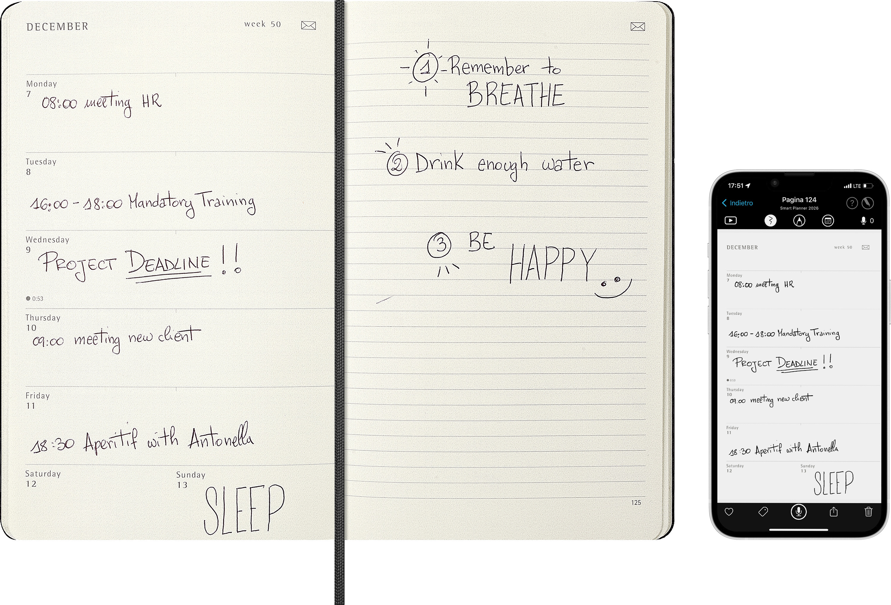 - Smart Terminkalender mit speziellem Papier für die Nutzung mit dem Moleskine Smart Pen