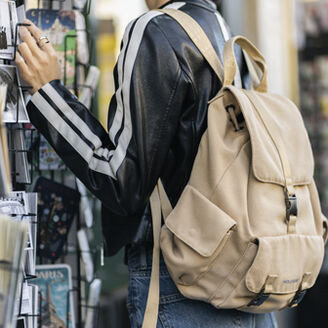 L'extérieur est réalisé dans un tissu souple effet coton qui s'adapte au contenu du sac, tandis que les bretelles réglables permettent de porter confortablement ce modèle. Le design pratique de ce sac à dos léger à l'élégance subtile en fait l'accessoire idéal pour toutes les aventures.