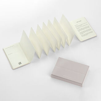Die klare und durchdachte Struktur ist inspiriert vom fließenden Format traditioneller japanischer Emakimono-Rollen und ideal, um Kontakte und die Geschichten hinter jedem Treffen festzuhalten. Die farblich abgestimmte Box dient zugleich der Aufbewahrung von persönlichen Erinnerungsstücken und kann mit einem Gummiband am Etui befestigt werden.