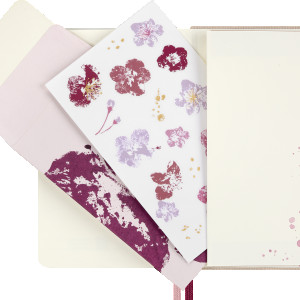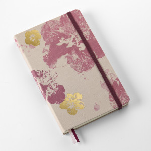 • farbiger Leinenumschlag mit einer einer Illustration zum Thema "Sakura"