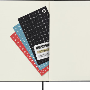 - nützliche Hilfsmittel wie Kalendarium, Reiseplanung, Ideen und Ziele, linierte Seiten für Notizen