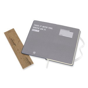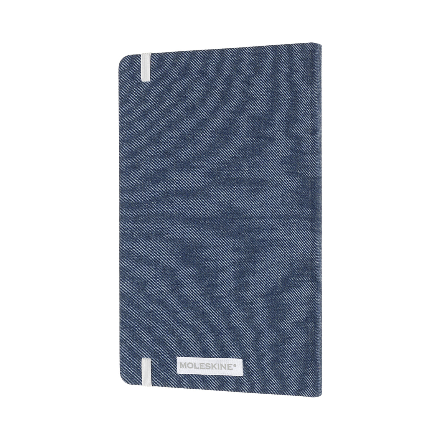 - Fester Denim-Einband mit abgerundeten Ecken und Gummiband zum Verschliessen