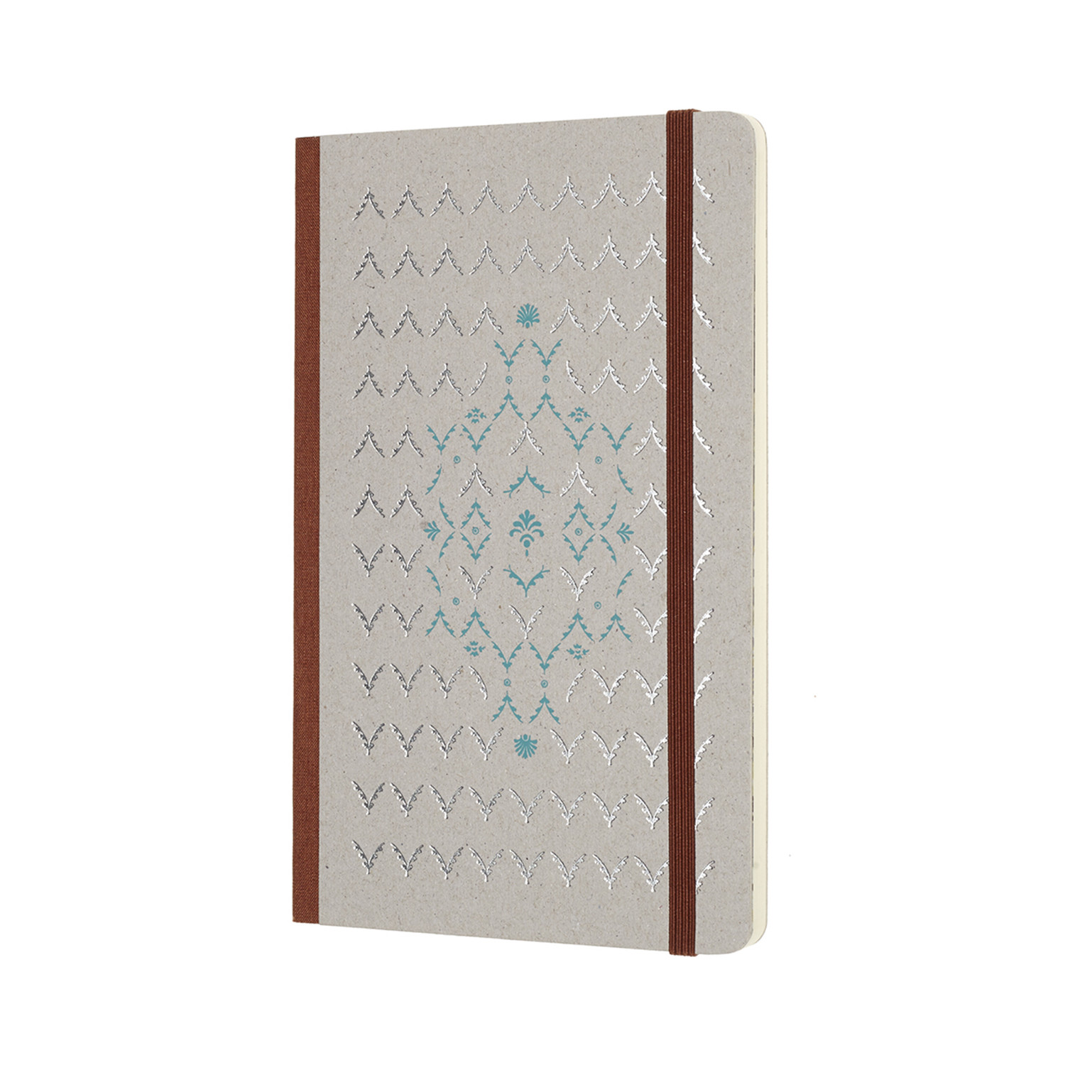 - das braune Gummiband zum Verschliessen und der Buchrücken sind in identischer Farbe