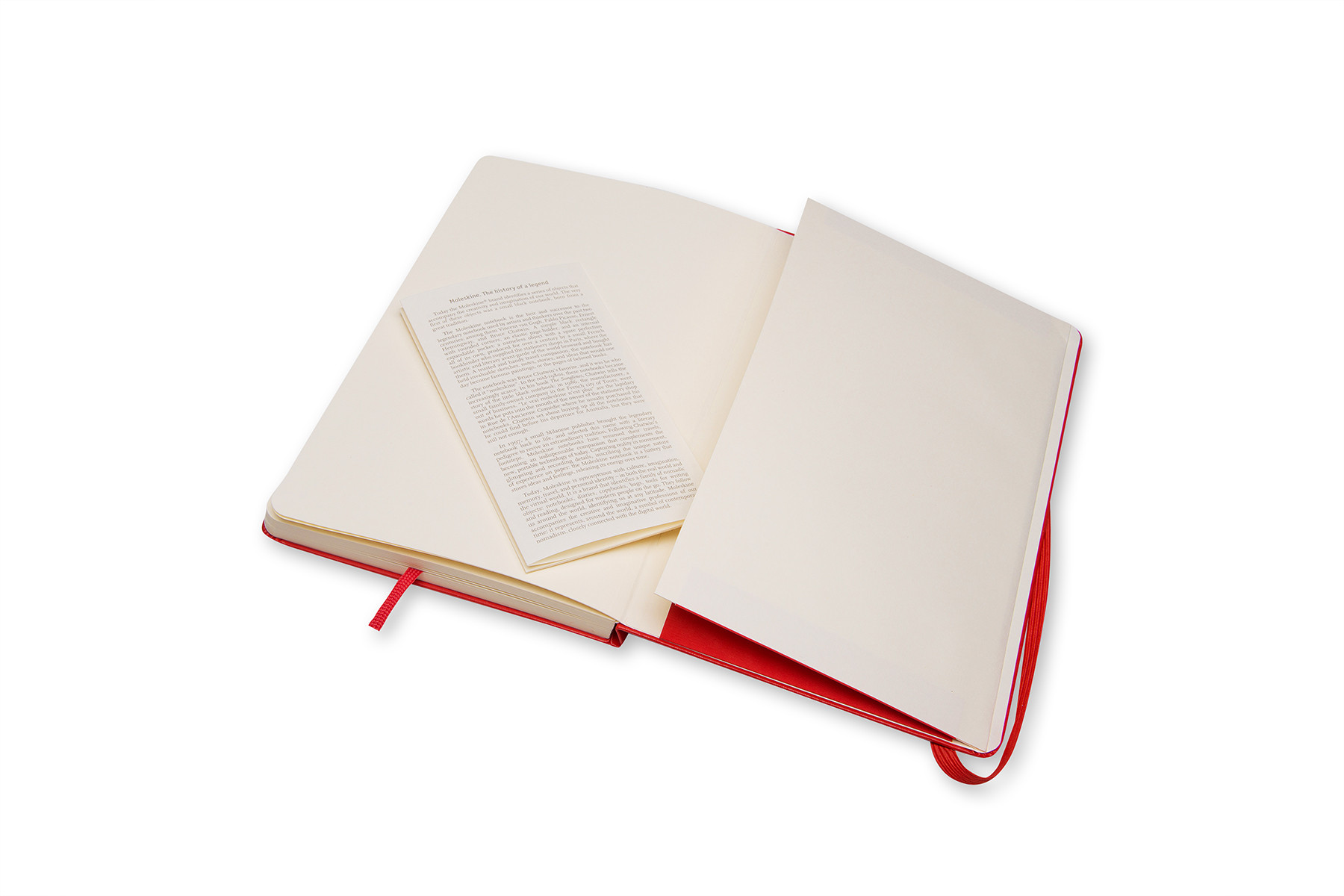 Les 104 pages du Carnet pour croquis grand format sont en carton de haute qualité, parfait pour dessins, croquis et détrempes. Chaque carnet Moleskine a une reliure cousue et une couverture cartonnée aux angles arrondis, papier sans chlore, un signet, la fermeture à élastique et une pochette intérieure en accordéon, contenant un texte qui raconte l'histoire de Moleskine.