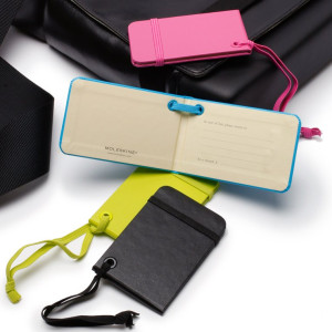 Magentafarbener Gepäckanhänger. Inspiriert vom klassischen Moleskine-Look, mit Platz für Name und Adresse.