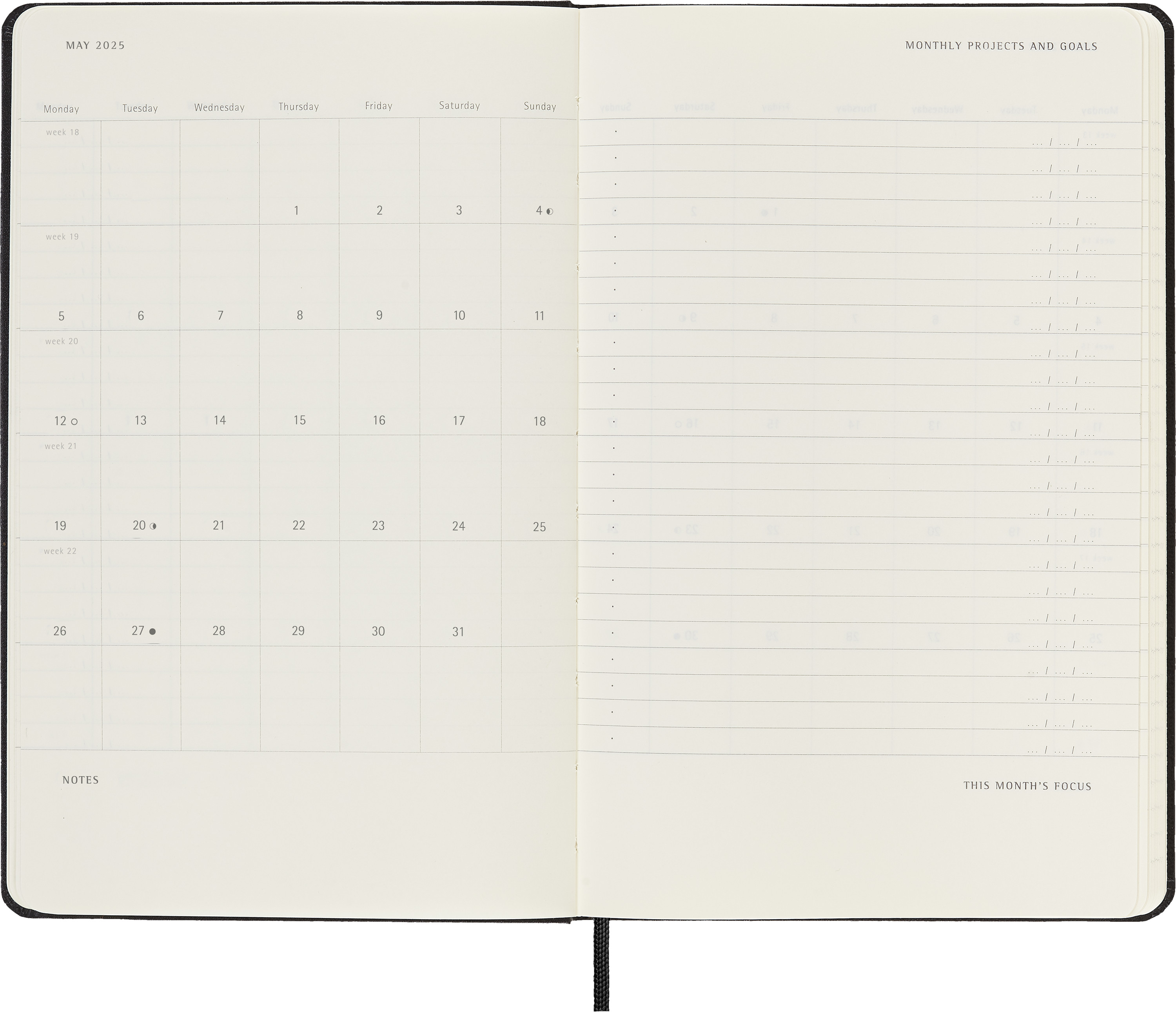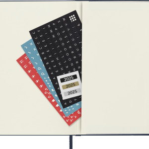 - nützliche Hilfsmittel wie Kalendarium, Reiseplanung, Ideen und Ziele, linierte Seiten für Notizen