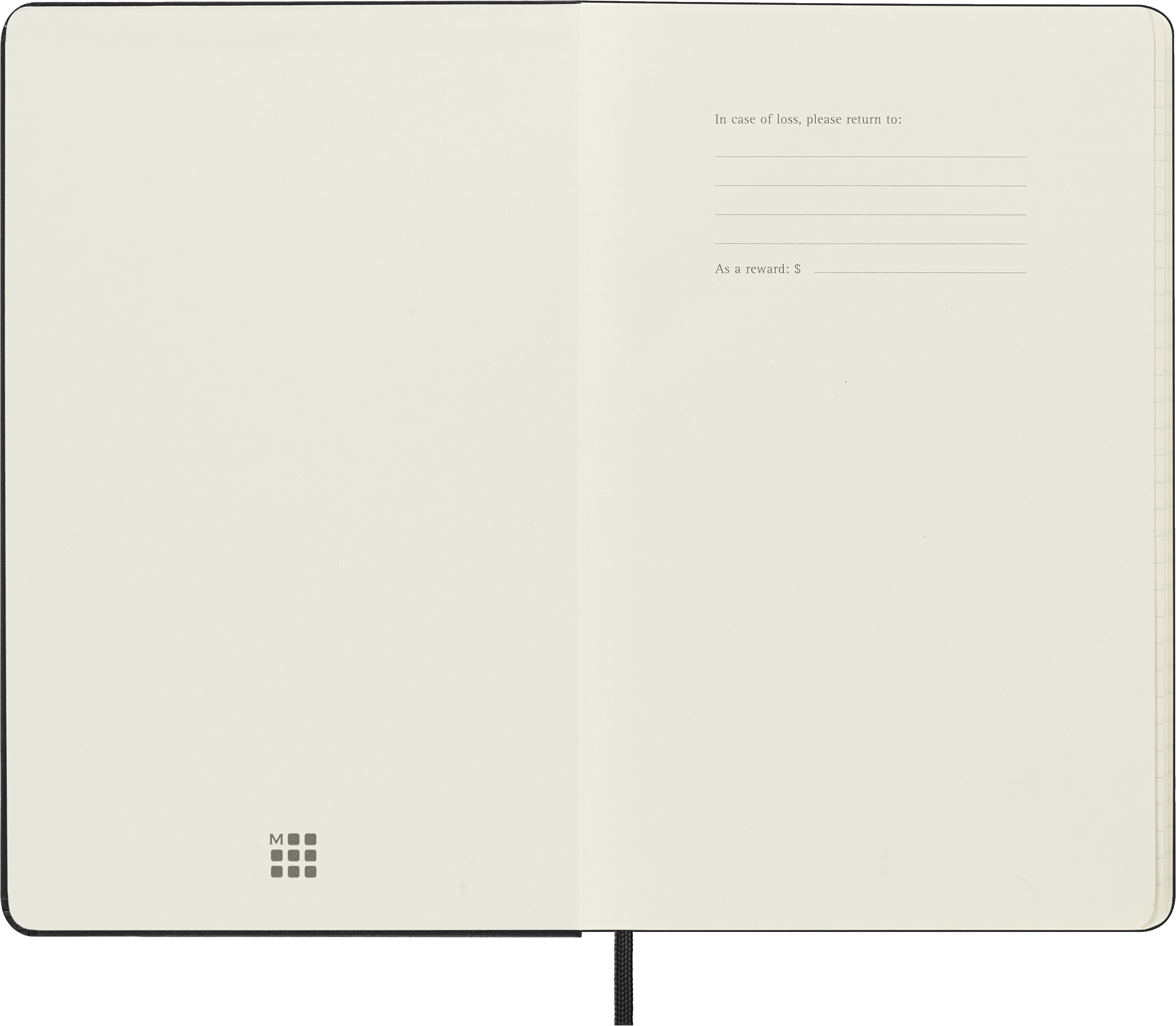 - fester Einband mit abgerundeten Ecken, Gummiband zum Verschliessen und Lesebändchen