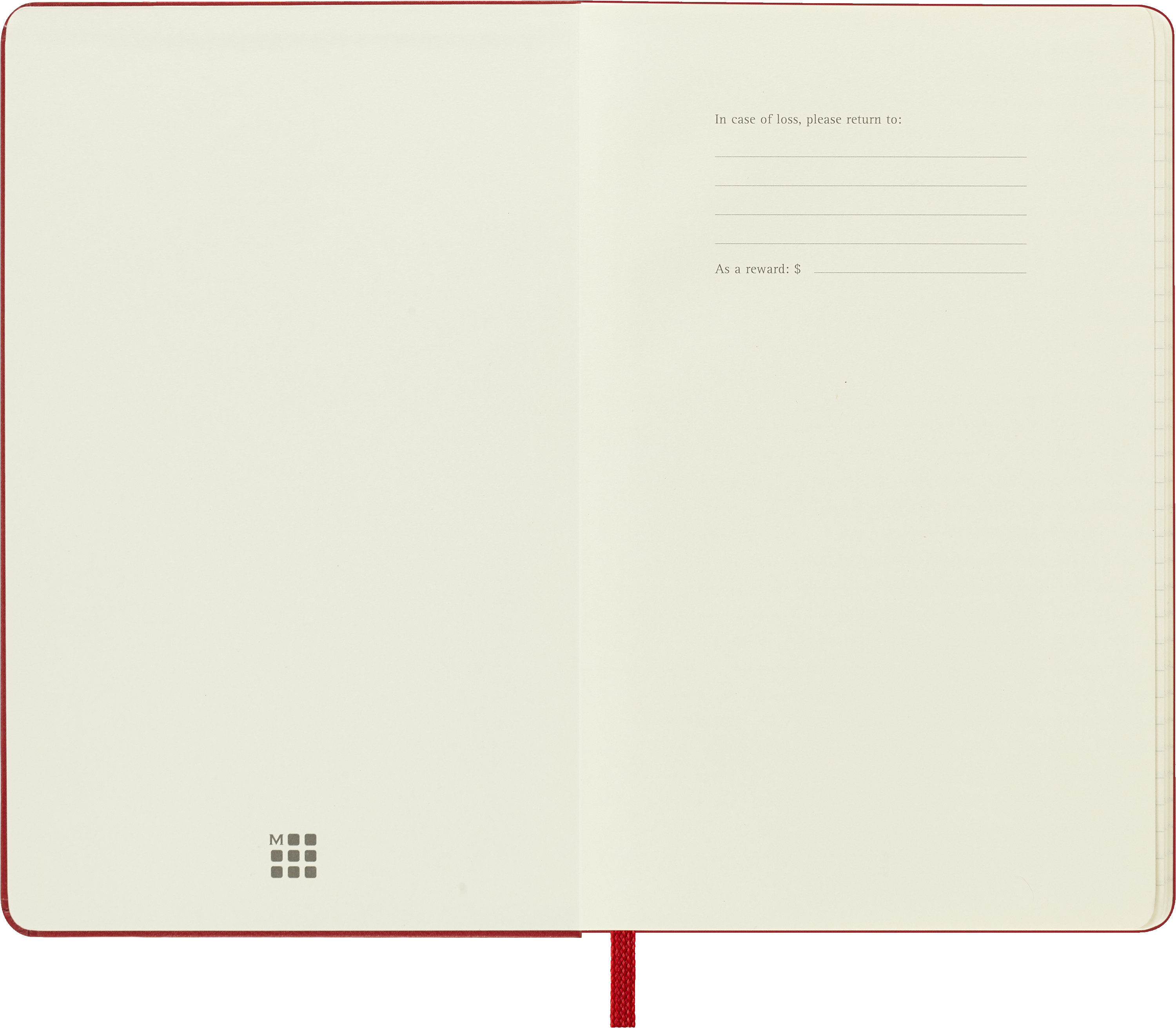- fester Einband mit abgerundeten Ecken, Gummiband zum Verschliessen und Lesebändchen