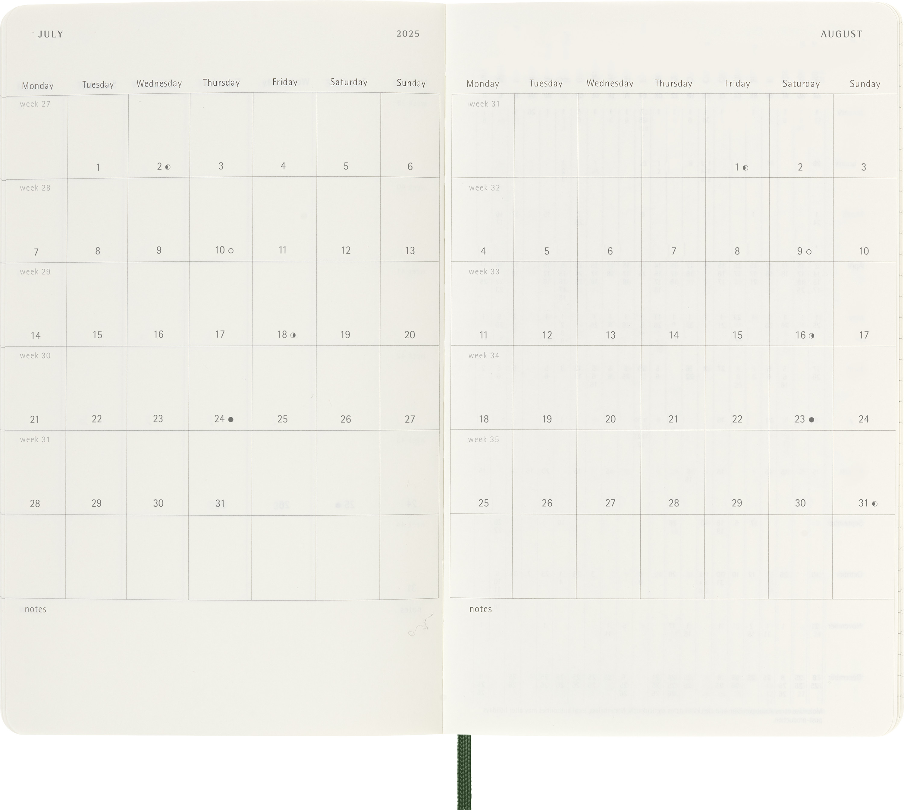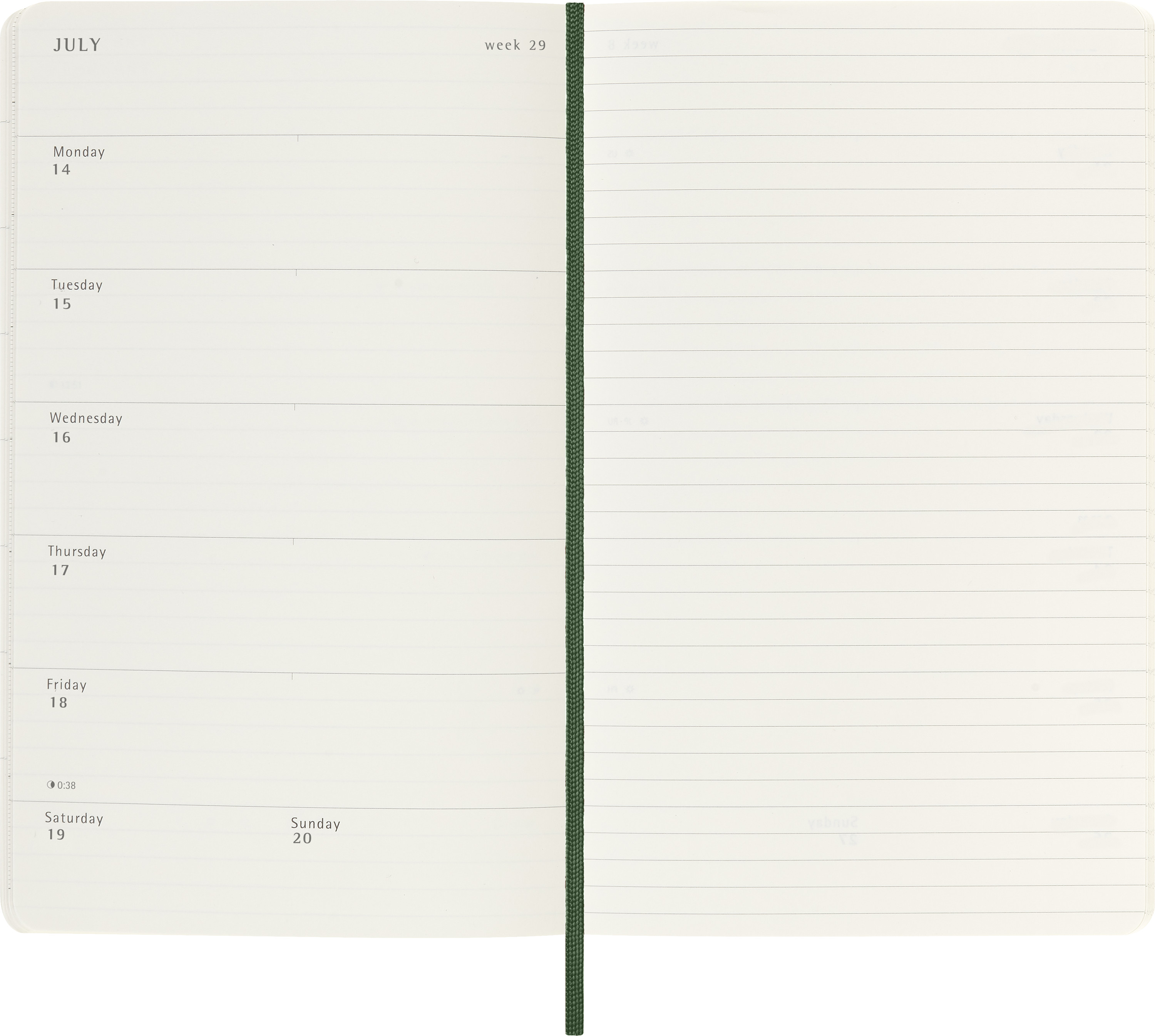 Links Wochenagenda, rechts linierte Notizseite