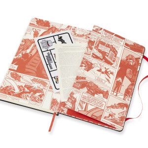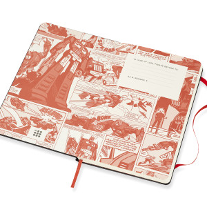 - fester Einband mit thematischen abgestimmten Grafikelementen und Details, abgerundeten Ecken und Gummiband zum Verschliessen
