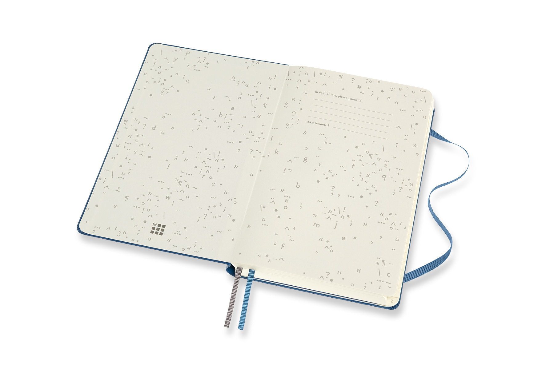 - Vorderes Vorsatzblatt mit „In case of loss“-Hinweis